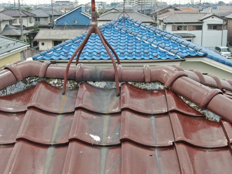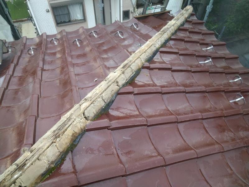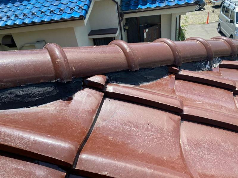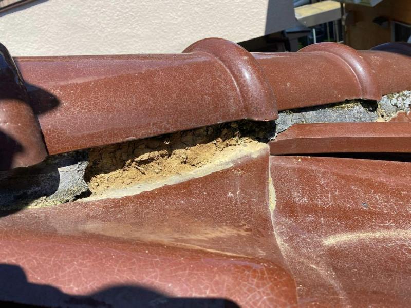 瓦には漆喰が詰められていることが多く、棟を支えるとともに、中の土台を雨や風から守る役割があります。15年くらい経つと経年劣化で変色したり、剥がれ落ちたりします。