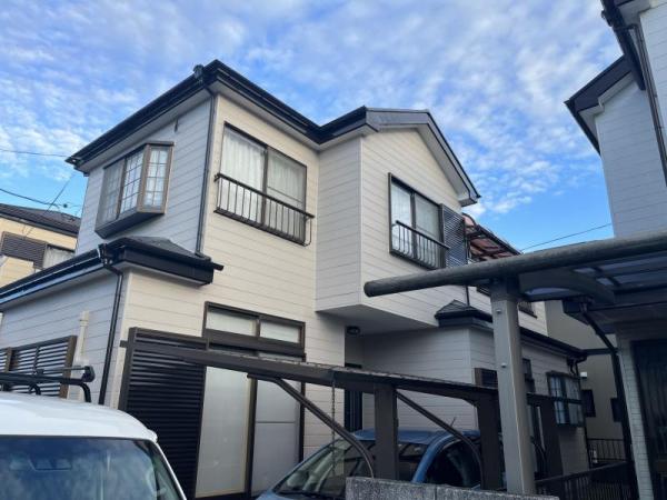 住宅に馴染むアイボリー系の色で塗装しました。古い塗膜は洗浄でしっかり落とし、サイディング用の下塗り材を使用していますので、密着がしっかりとし剥がれる心配もありません。塗料は10年程度もつシリコン系の塗料を使用しました。