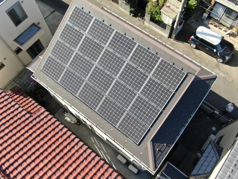 屋根は太陽光パネルが載っている部分を除いて塗装を行いました。