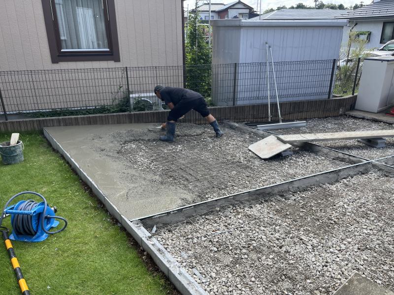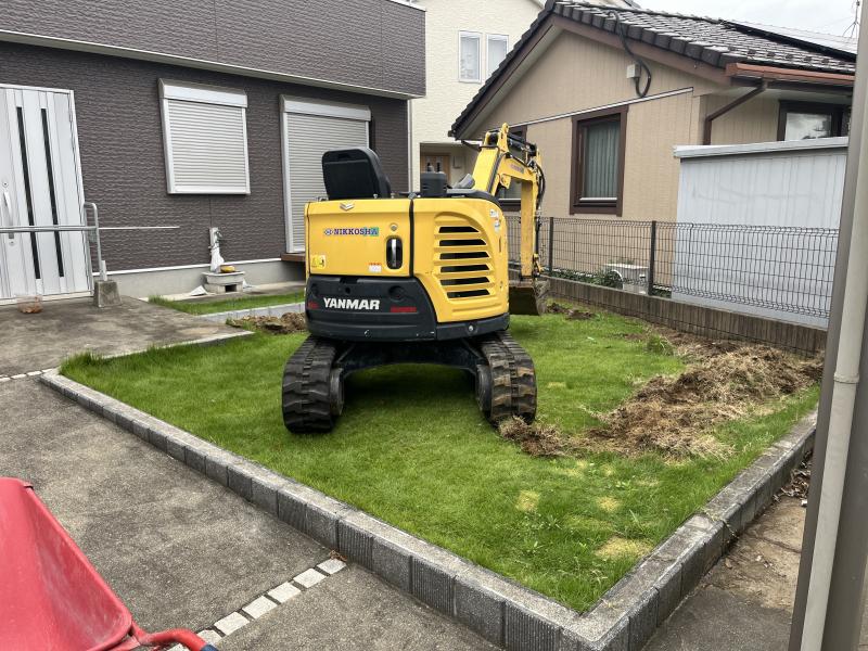 | 仕様 | 既存芝及びブロック撤去・再生採石敷・ワイヤーメッシュ敷・土間コンクリート打設 |
