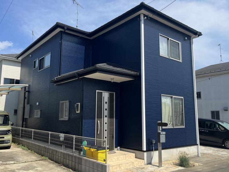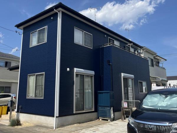 サイディング塗装の目的は、主に外壁の保護と美観の維持にあります。外壁は雨風や紫外線などの自然環境に常にさらされています。そのため、適切な塗装を施すことで外壁の耐久性を高めることが必要です。もちろん耐久性もと同時に見た目の美しさも重要となります。今回は期待耐候年数が20年程度の無機塗料を使用し、塗装しました。ネイビー系は一見派手に見えつつも彩度を落とした色を選択すれば住宅にもマッチします。