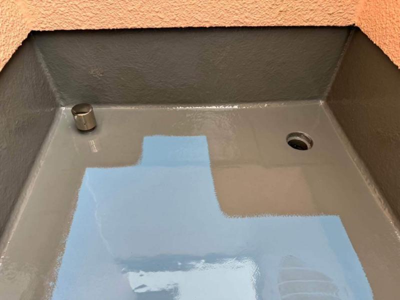 既存はFRP防水です。FRP防水とは、繊維強化プラスチック(Fiberglass Reinforced Plastics)の略で、ガラス繊維にポリエステル樹脂を浸みこませて固めた塗膜防水です。この防水方法は非常に高い防水性を誇り、強い耐久性を持つため、特にベランダや屋上の施工に適しています。しかし、FRP防水は紫外線に対する耐性が低く、経年による劣化が懸念されます。ひび割れや剥がれといった劣化のサインが現れやすくなるため、定期的なメンテナンスが必要です。それでも、FRP防水は1日での施工が可能で、コストも比較的抑えられているため、コストパフォーマンスに優れた選択肢として評価されています。戸建ての新築にはFRP防水が多く採用されています。