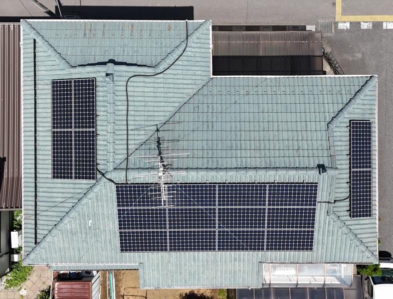 2階から雨漏りしている状態でした。屋根は12年前に塗装しており経年相当の劣化と、おそらく築38年が経ち中の防水紙が傷んでいることが雨漏りの原因と思われます。新たに防水紙を張るとなると屋根を葺き替えする必要があります。太陽光パネルは10年前に設置したばかりですので、一度撤去し戻す作業が必要となり、少し大がかりな工事となりましたが、ご納得していただき、工事をお任せいただきました。