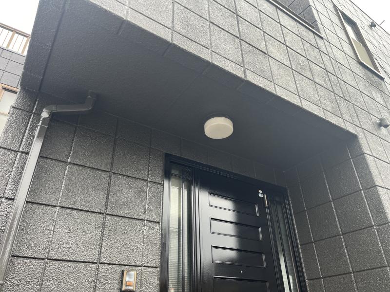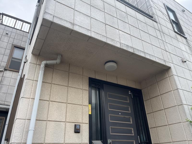 外壁材が凹凸が多くリシンのような仕上がりで汚れが付きやすく、少し恐怖を覚えるような見た目になっていました。今の塗料にはほとんど防カビ効果が付帯しているものが多いですがその中でも耐候性のあるウレアシールドをご提案しました。