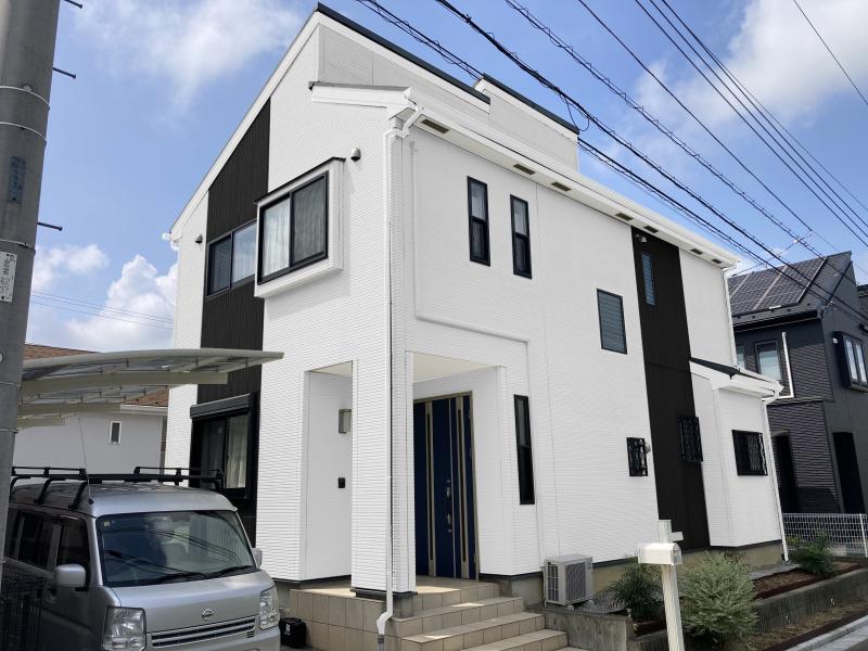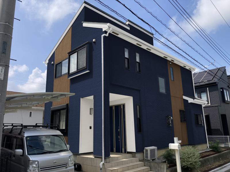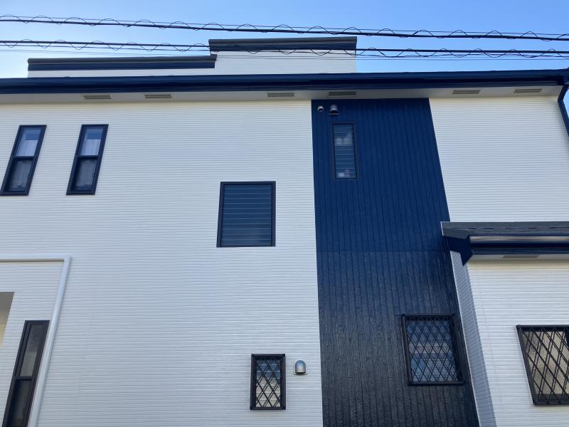 外壁塗装・屋根カバー~白こそ正義!アクセントには流行の紺色をチョイス~|毛呂山町|