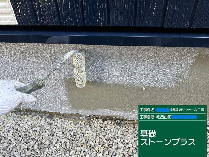 外壁塗装において下塗りは、最初に行われる重要な工程です。その目的は、塗料を外壁面にしっかりと密着させることにあります。もし下塗りを行わないと、中塗りや上塗りが外壁にうまく付着せず、塗膜剥がれの原因になります。また、下塗りを適切に行うことで、中塗りや上塗りの仕上がりの品質を大きく向上させることができます。外壁塗装の基盤となるこの工程を省略せず、確実に行うことが長持ちする外壁を実現する第一歩です。今回は透明な下塗りを使用しています。