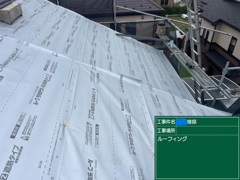 屋根カバー工事において、防水紙は雨漏り防止のために不可欠な存在です。雨漏りの主な原因は、屋根材の劣化ではなく、防水紙、つまりルーフィングの異常によるものであることが多いです。防水紙は、屋根材の下に敷かれる防水用のシートで、雨水の侵入を防ぐ役割を果たしています。高耐久の屋根材を使用していたとしても、防水紙の性能が不十分であれば雨漏りが発生するおそれがあります。防水紙がしっかりと機能していることで、屋根材が防ぎきれない小さな雨水の浸入を効果的に防ぐことができ、屋根全体の防水性能を保つことが可能になります。ガイソー上尾店ではセーレンのルーフラミテクトZ遮熱を採用しています。高い防水性能に遮熱タイプが加わっており高性能な防水紙です。