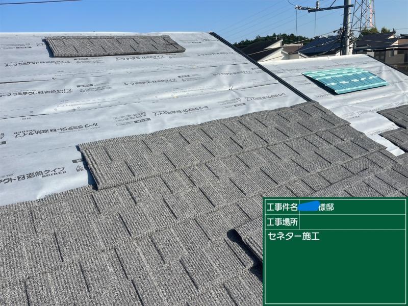 今回採用したセネターは天然の石粒が吹き付けられている金属の屋根材です。60年以上と長い実績を持つセネターはなんといっても塗り替えが必要ないということが一番の特徴です。断熱効果もあるので、屋根カバー工事または葺き替えを検討している方へおすすめ商品です。