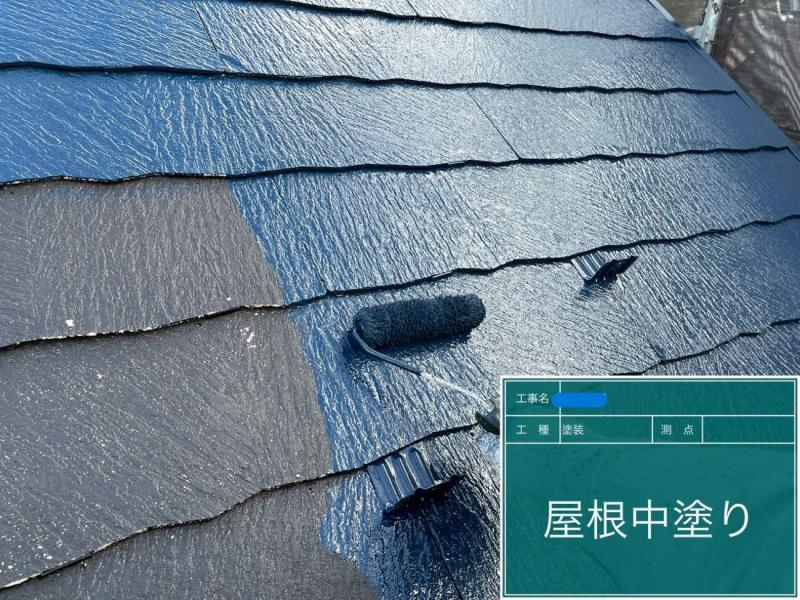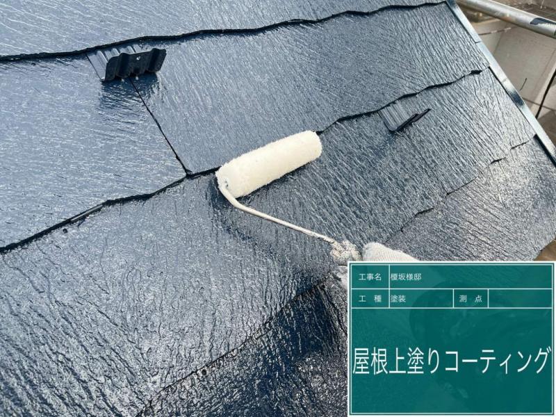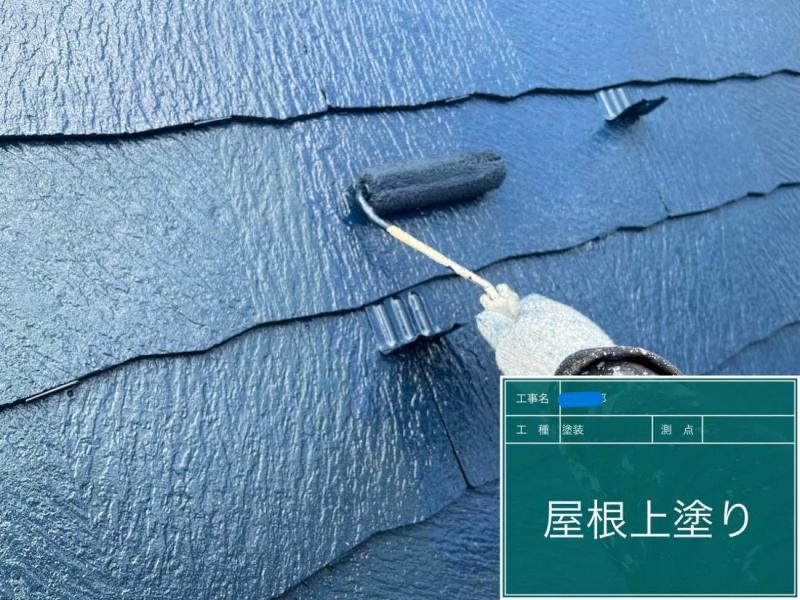 通常屋根は下塗り+中塗り+上塗りの3回ですが、今回は最後に上塗りを保護するトップコートを塗装しました。