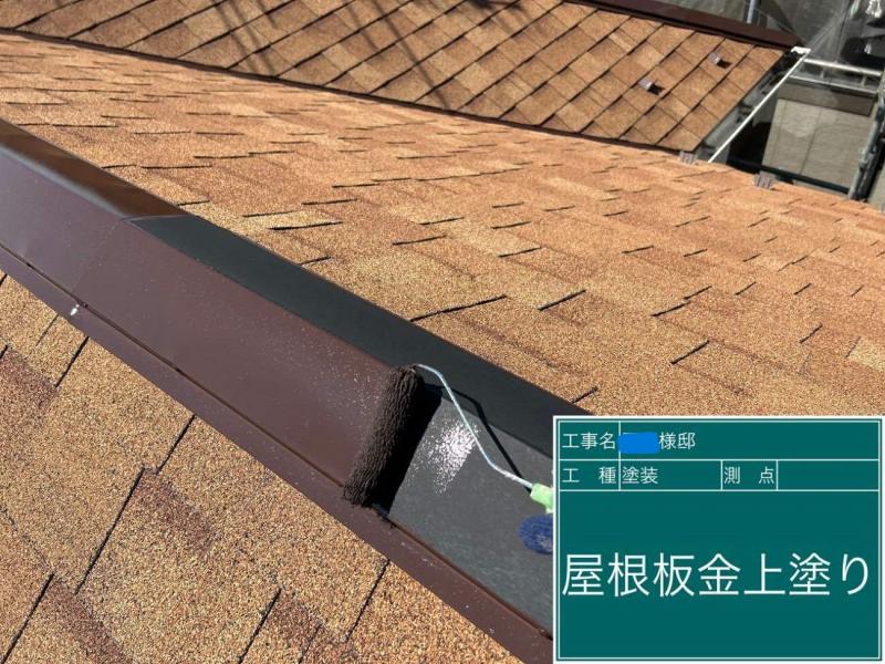 屋根は既存がアスファルトシングルという屋根で今の段階ではまだ塗装が必要ありませんでしたので、鉄部の棟板金や雪止めのみを塗装しました。