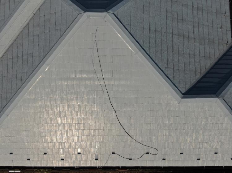 屋根は少し汚れがついているものの、遮熱フッ素塗料の艶がしっかり残っており、防水性も健在でした。